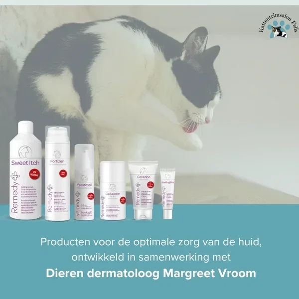 Katten likken vaker aan een crème. De ervaringen bij katten met deze crème zijn zeer gunstig’Dieren Dermatoloog M.W. Vroom over Cerazinc